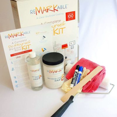 Whether you are looking for the perfect dry erase marker, need an extra roller or want to find the best cleaner to keep your whiteboard wall clean for years to come, we have you covered. Clients love our environmentally friendly Remarkable Dry Erase cleaner that can keep your board looking refreshed and clean. Our Remarkable Starter set is also a great gift for anyone with a whiteboard wall – it comes with Remarkable low-odor markers, microfiber cloths and a bottle of Remarkable dry erase cleaner ready to go.