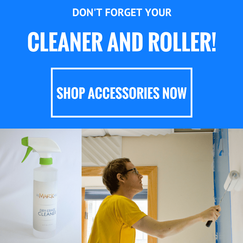 Ensure your surface is smooth, dry and dust-free and the ReMARKable kit contains all of the essential elements to make painting your wall a complete success. The kit comes with the solution, a roller, gloves and much more to make transforming your wall into a whiteboard an easy and enjoyable experience. If you want to see how simple it is, watch this how-to video.
